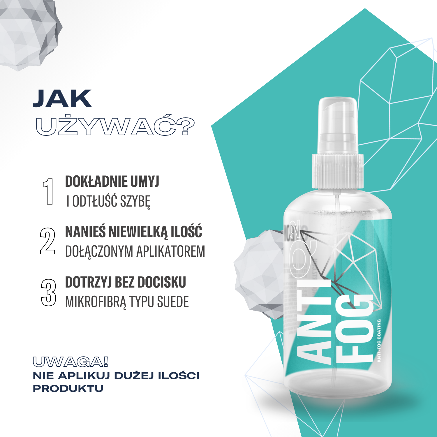 OPAKOWANIE ZAWIERA: Q² ANTIFOG / 4x APLIKATOR SUEDE / 1x BLOCZEK APLIKACYJNY /, 1x ŚCIERECZKA SUEDE 20x20cm