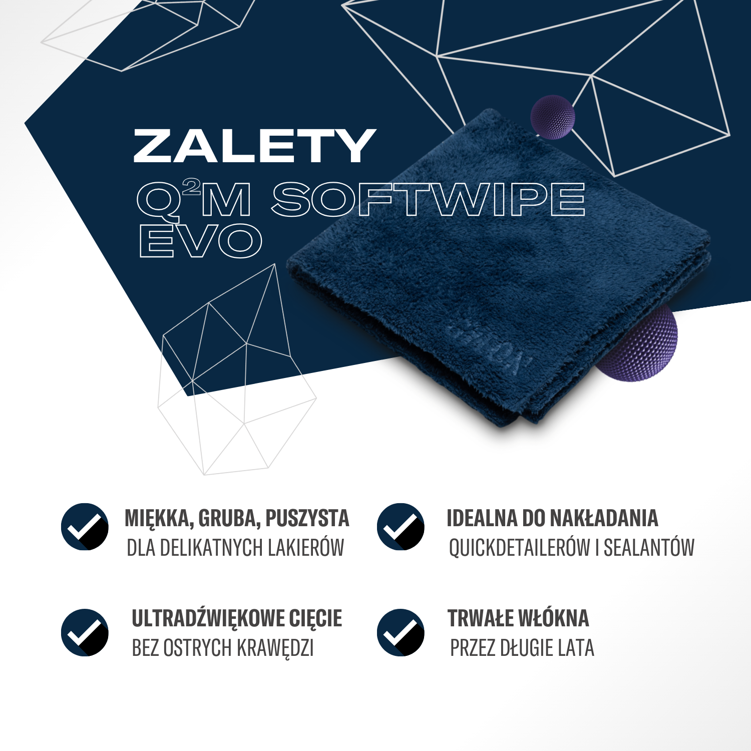 Nie każda mikrofibra nadaje się do pracy na wrażliwych powierzchniach. Dlatego powstała Q²M SoftWipe EVO – ściereczka stworzona specjalnie z myślą o najbardziej delikatnych lakierach, które wymagają absolutnej ostrożności. Jej ekstremalnie miękkie włókna łączą grubość i puszystość z delikatnością, co czyni ją idealnym narzędziem do docierania powłok ochronnych, quick detailerów czy sealantów w sprayu.
