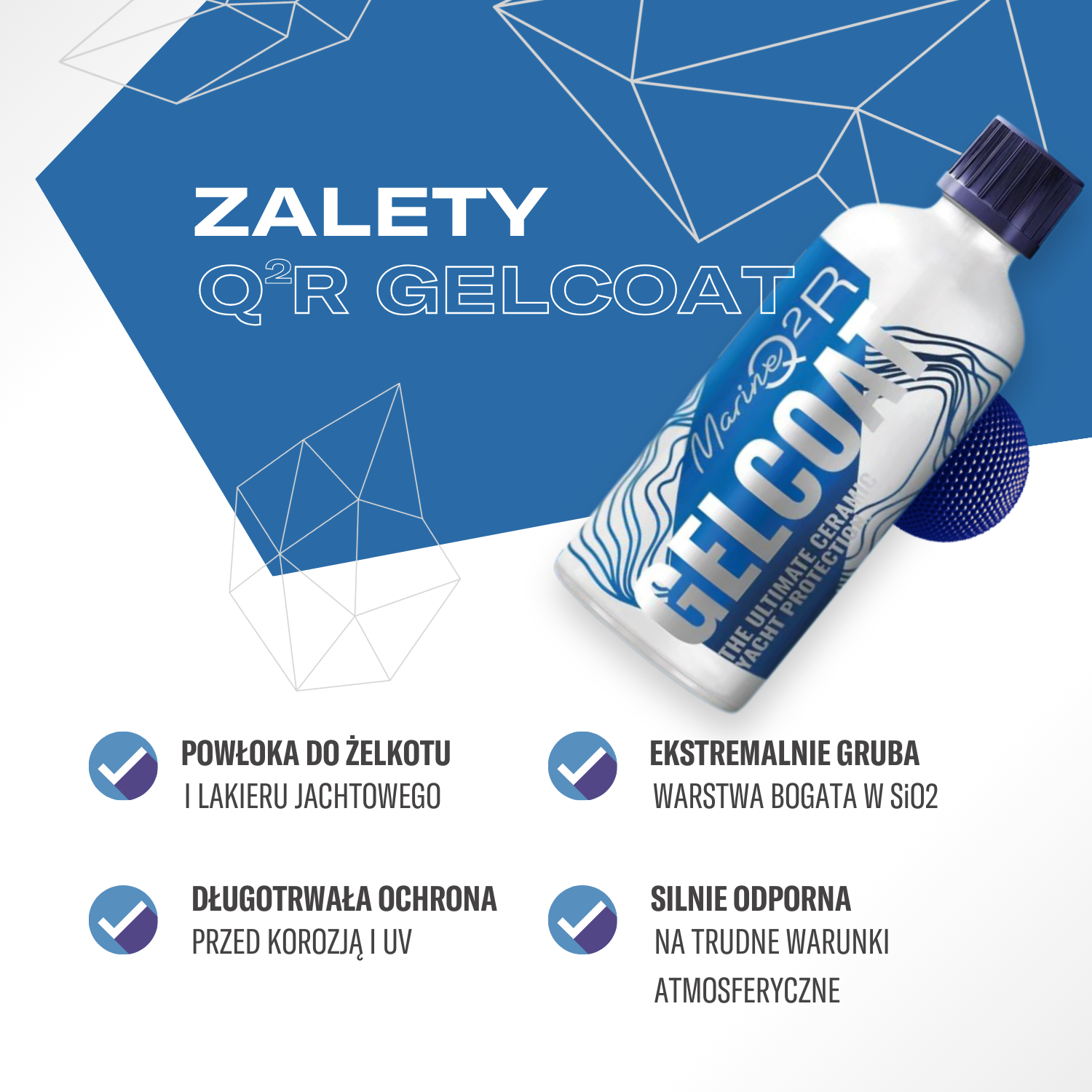 Q²R GelCoat to wyjątkowa powłoka ceramiczna zaprojektowana z myślą o środowisku morskim. Tworzy solidną, wysoce odporną warstwę ochronną, która skutecznie zabezpiecza żelkot i lakier przed promieniowaniem UV, utlenianiem i agresywnym działaniem słonej wody. Dzięki temu powierzchnie zachowują głęboki kolor, połysk i trwałość przez wiele miesięcy, nawet w ekstremalnych warunkach.